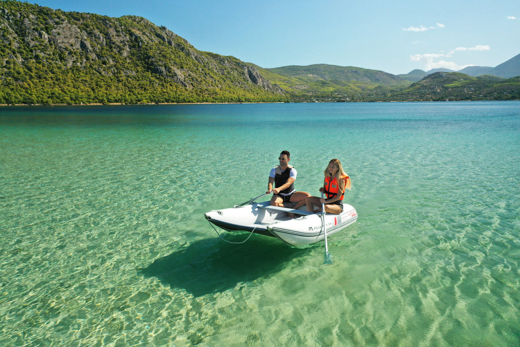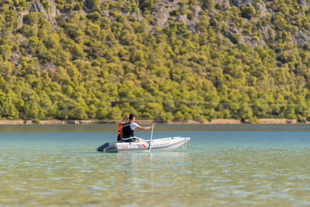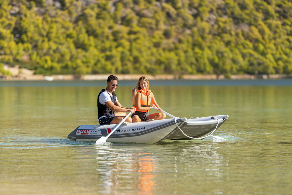 The AIRCAT is ultra portable and compact to take on trips and expeditions. The AIRCAT is the ideal water safety craft and a touring boat. The unique open bow design is a favourite for fishing and diving lovers, offering a spacious standing or resting platform. Constructed with Aqua Marina's signature High Frequency Welding Technology for tube chambers,