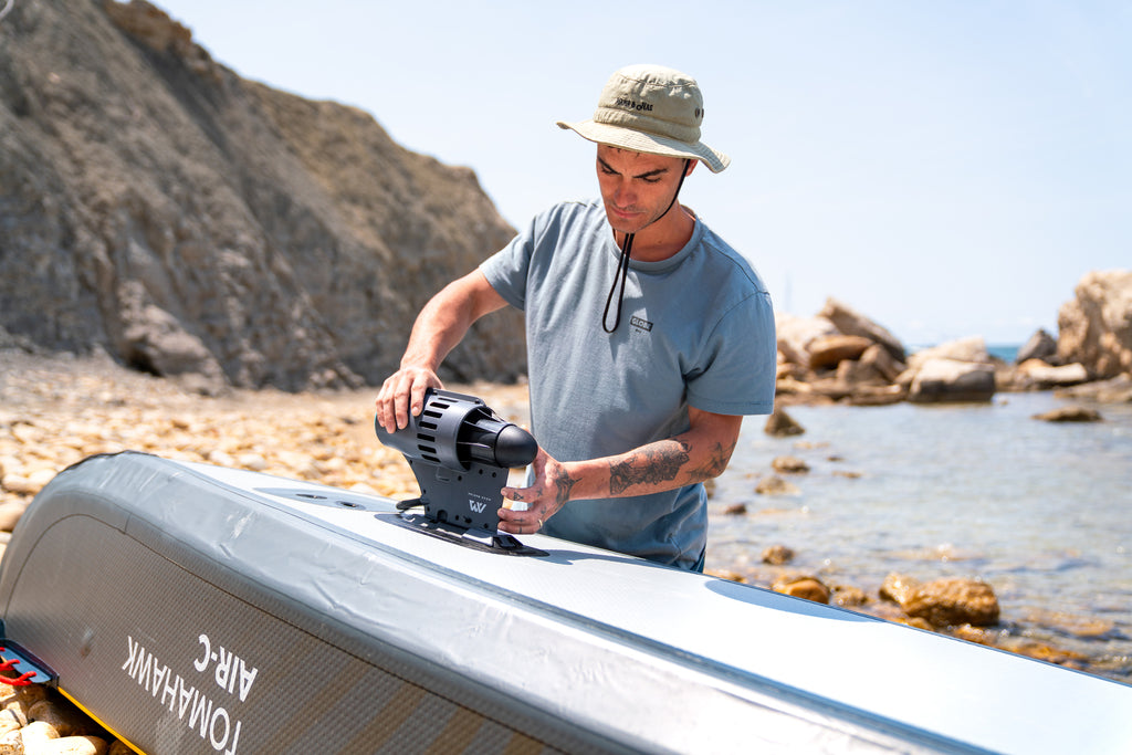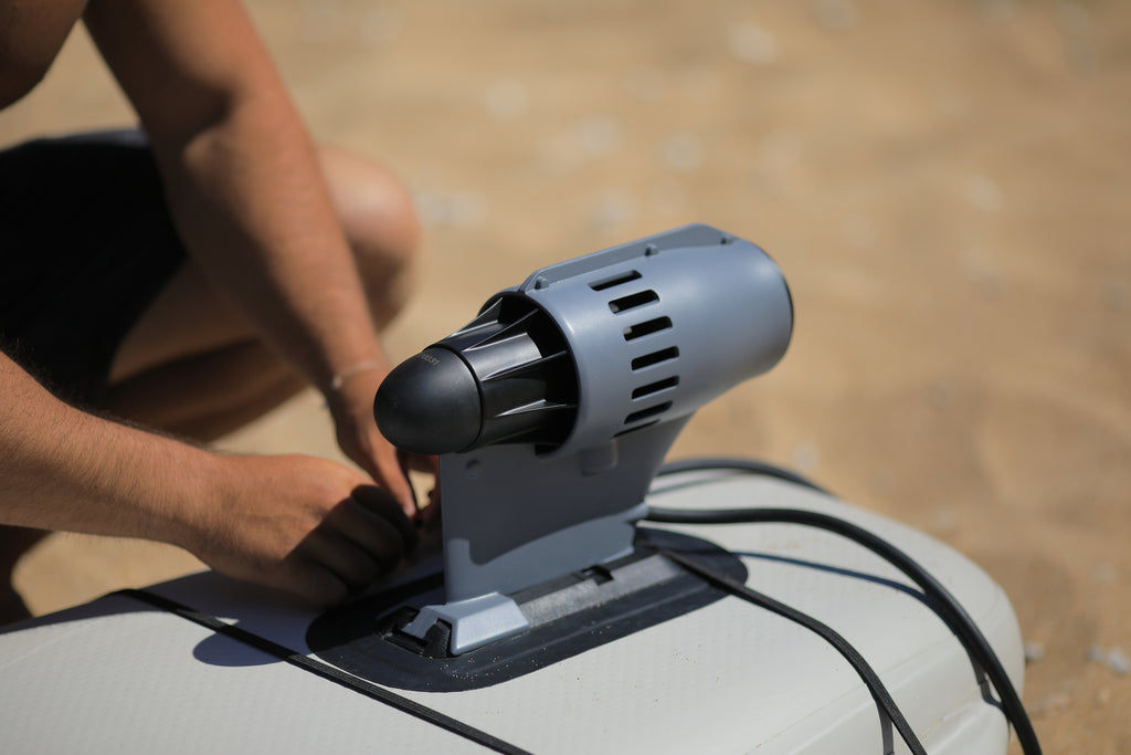 An electric power fin designed to fit almost all types of watercrafts with a fin box. Helping you to extend trips and save more energy when fighting against winds and
